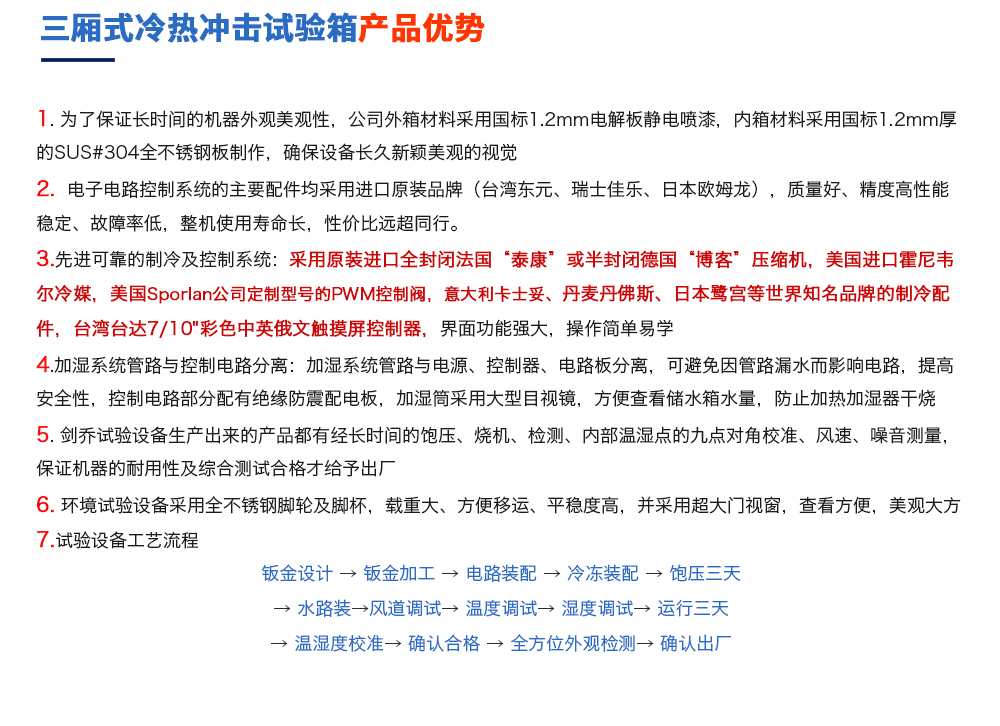 • 三廂式冷熱沖擊試驗箱型號命名及參數表